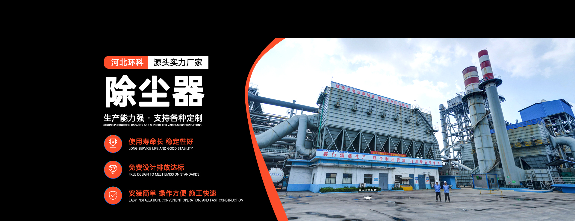 河北環科除塵設備有限公司是一家專業生產環保機械產品的高新技術企業、專精特新企業。公司位于河北省滄州市獻縣。公司始建于1989年,公司前身河北通風環保設備廠,2002年成功改制重組為河北環科除塵設備有限公司,注冊資金1.18億元,占地面積100畝,專用生產檢測設備配套齊全。公司以保護環境,造福人類為己任,大力研究設計、生產制造和推廣應用環保產品。 公司成立至今著力開發各類除塵環保產品,在借鑒國內外新技術的基礎上自主研發及改造出多種除塵環保設備,并先后取得了二十余項專利及軟著,取得了廣泛的市